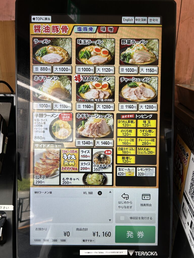 私は今回、MAXラーメン(並)を注文しました!