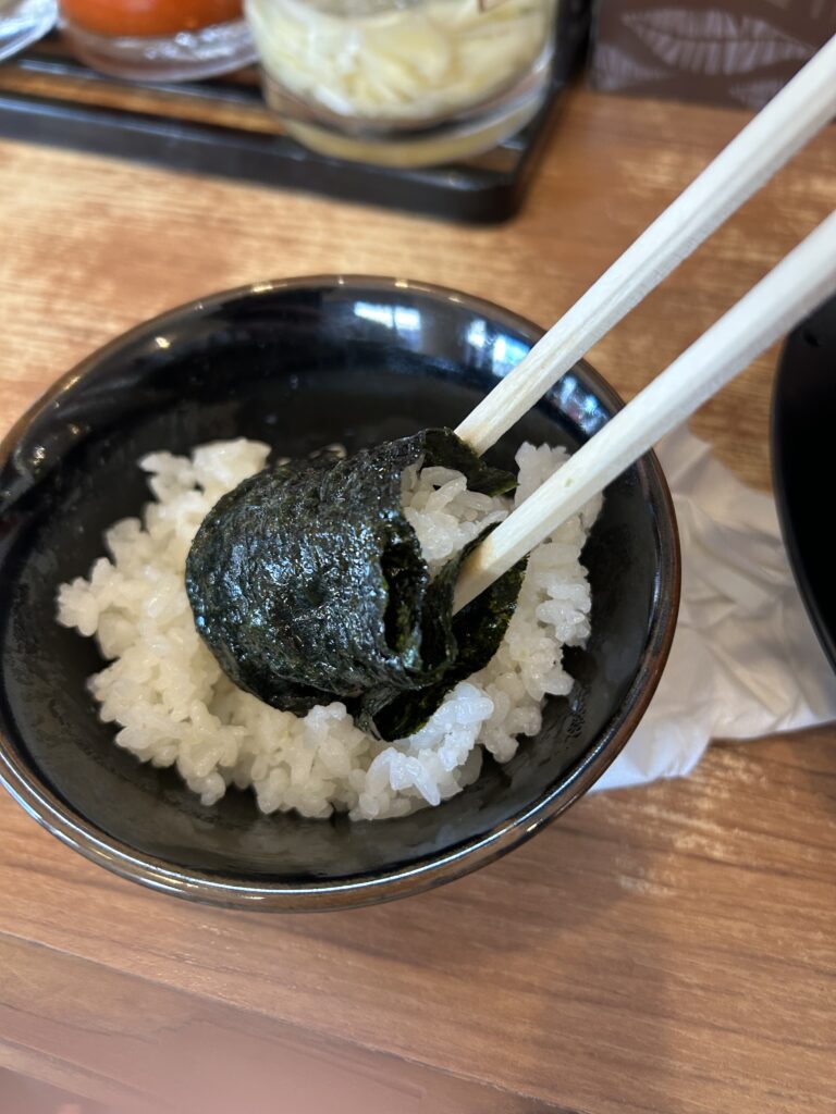 海苔をスープに浸し、それをご飯に巻いて食べるスタイルは、家系ラーメンならではの醍醐味といえます。